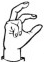 На ћирилици написано СУЗАНА МЕЋАВА састоји се из 12 слова [?]. Исписано ћириличном једноручном азбуком за глувонеме: